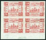 1894 Dowager imperforate proof on very thin laid paper, 24 cds carmine block of 4, very lightly hinged on one stamp only, very