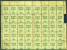 1897 Small Dragon with Small Figures surcharged 1c on 1cd green, large block of 40 with margins on 3 sides, heavy toning and