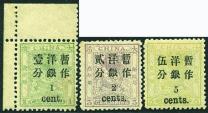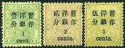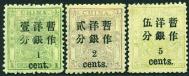 1897 Small Dragon small figures surcharged 1c to 5c complete set of 3, mint and toned. Chan 31-3. Photo