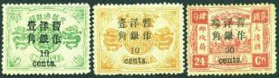 1897 Small Dragon Small figures surcharged 1c and 5c x 8, each tied by part of Dollar chop, mixed condition. Chan 31, 33.