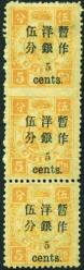 hinged on top stamp only, toned gum but only a handful of recorded pairs, very rare. Chan 41c. Photo