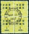1897 Dowager larger figures surcharged 2.50mm on second printing, 1/2c on 3c chrome yellow block of 4, tied by full 'CUSTOMS/