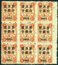 1897 Dowager large figures surcharged 2.50mm on 2nd printing, 1c on 1 cd red orange block of 9 with gutter margin, mint with