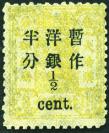 1897 Dowager re-drawn design, 1/2c on 3 cds yellow with figures '1/2' 0.5mm below Chinese char. Variety, mint and lightly hinged,