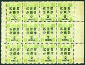1897 Dowager large figures surcharged 2.50mm on second printing, 2c on 2 cds yellow green block of 12 with sheet margins, mint