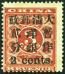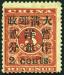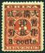 1897 Small figures surcharged 2c on 3c, with center char. 'Yang' missing a dot and perf. shifted to right variety, mint. Chan 84var.