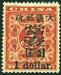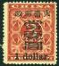 1897 Large figures surcharged $1 on 3c, tied by part of dollar chop, extremely fine used. Chan 90. Photo