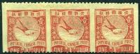 1897 Typo Coiling Dragon $1 deep red and rose hoirzontal strip of 3 imperforate between, the left second and third stamps creased,
