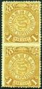 1902 Coiling Dragon without wmk. 1c ochre vert. pair imperf. between variety. No gum and a few toned spots on