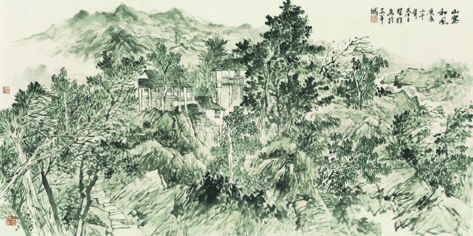 方楚雄(1950-)捲軸畫-山水,外框158 x 86 釐米,內框136 x 68釐米.