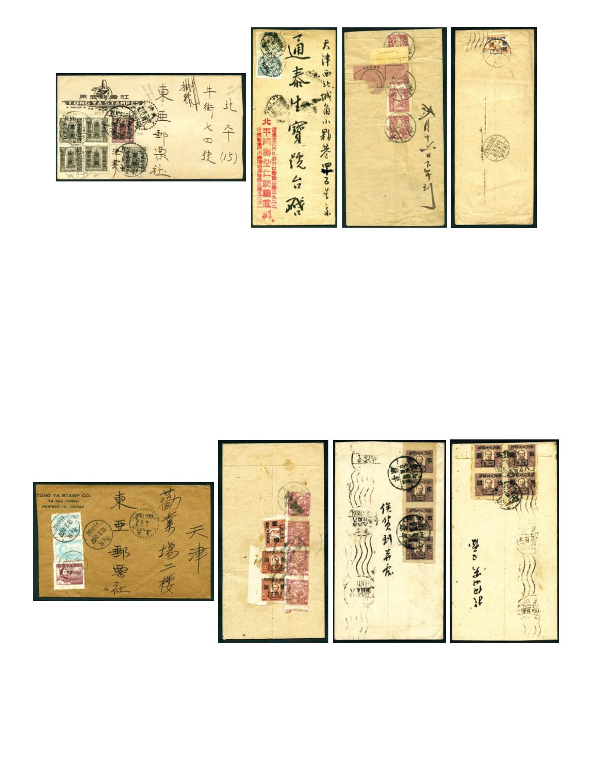 1949 (23 Feb.) A cover from Tientsin reg. to Peiping, bearing Tientsin surch. On Money Order stamps 50c on $50 to $6 on $20