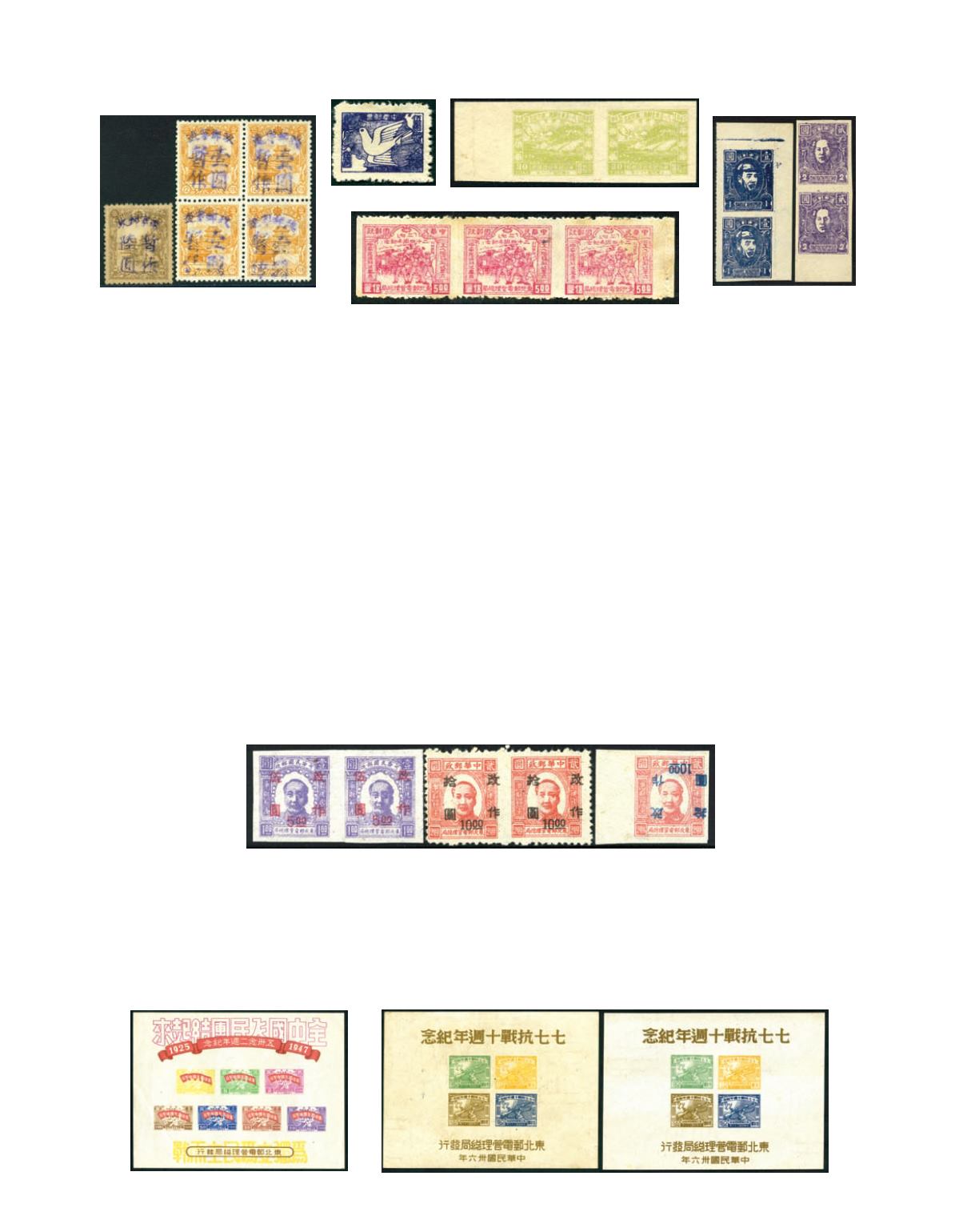 Communist Party; 2nd Ann. of Japanese Surrender $30 imperf. pair and many more. Mint, minor toning.  Yang NE9-12, 12a, 17-26,