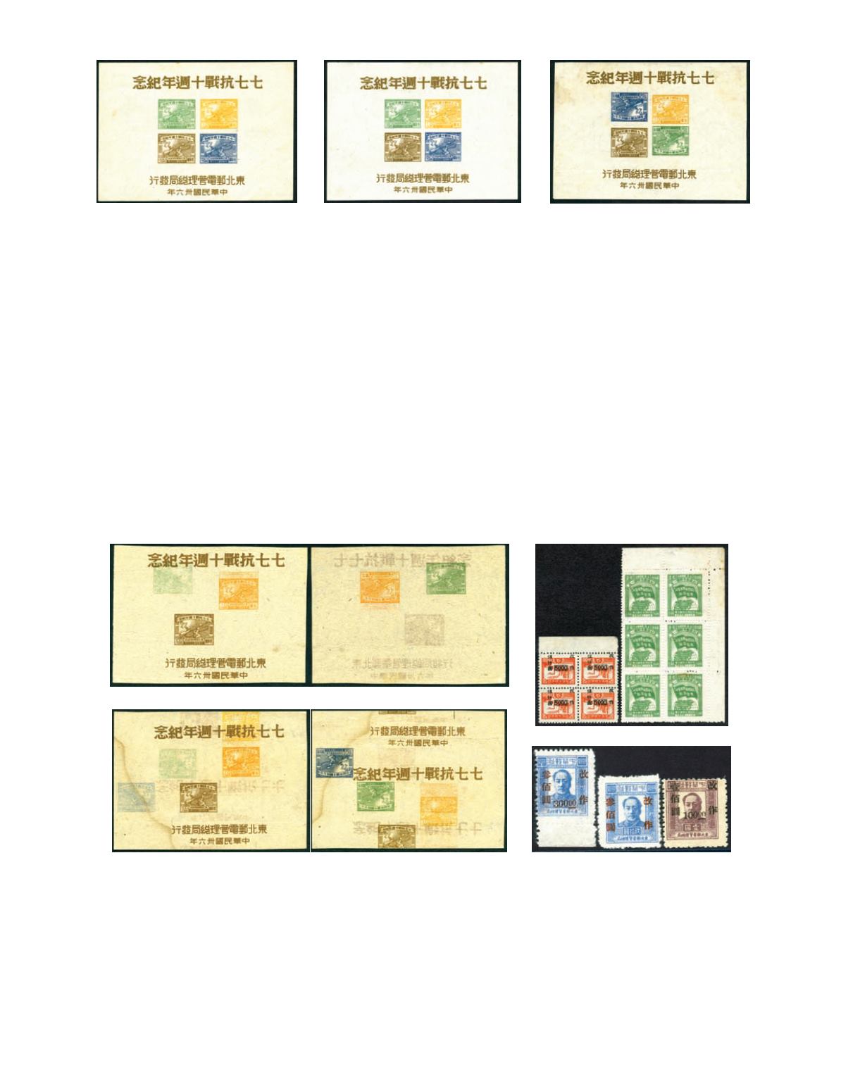 1947 The 10th Anniv Outbreak of War with Japan miniature sheet on native paper, showing multiple printing errors, on front with
