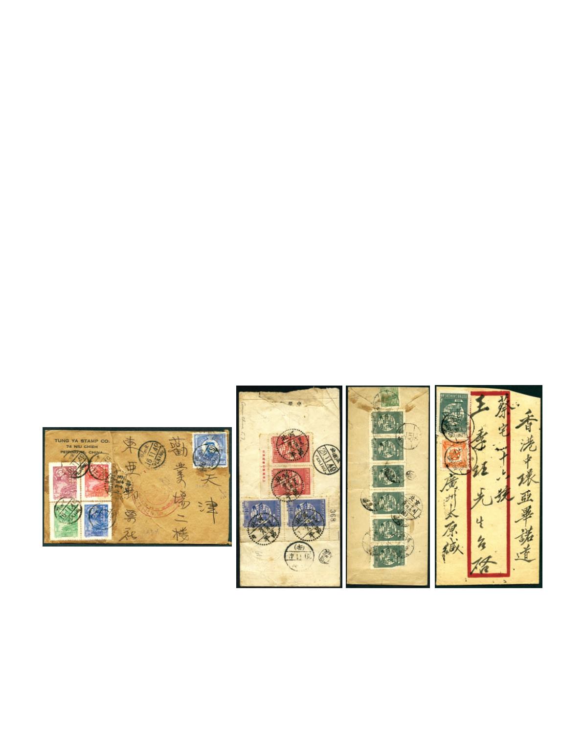 1950 (18 Jan.) An envelope from Hubei to Peking, bearing on reverse C3 $ 300 horizontal strip of 6 and North China Tien An Men