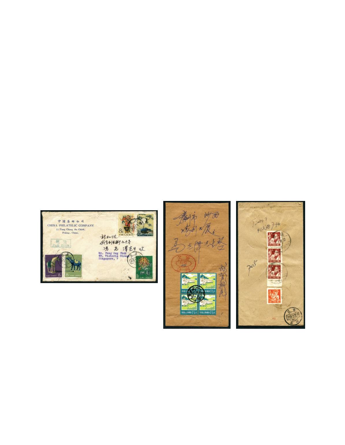 A small selection of the PRC postal history item in a small box, with duplicate, including postage paid reg. cover to Singapore,