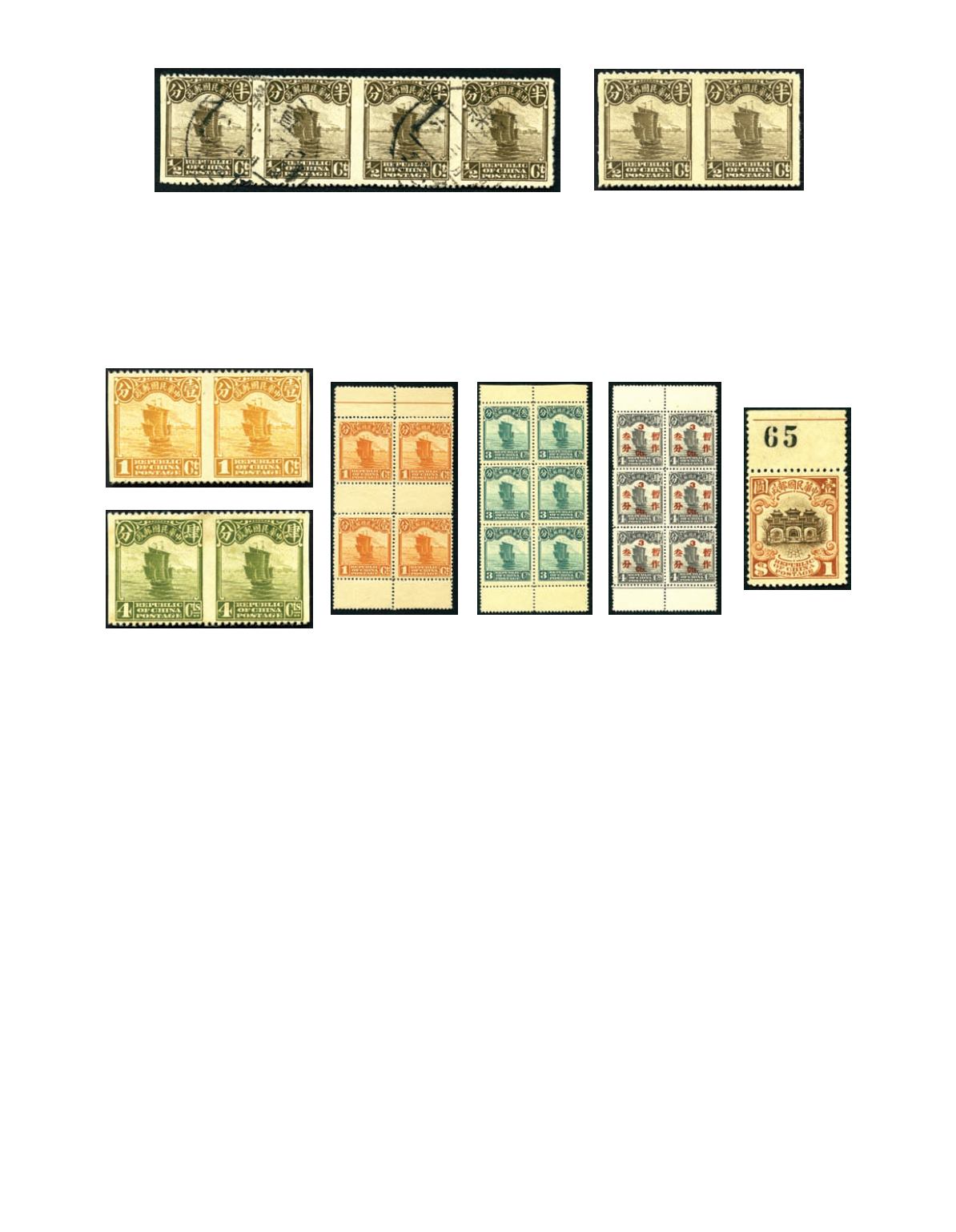 1923 Second Peking Print Junk, 1c ochre block of 4 with gutter margins, this was prepared for booklets but unused, unmounted