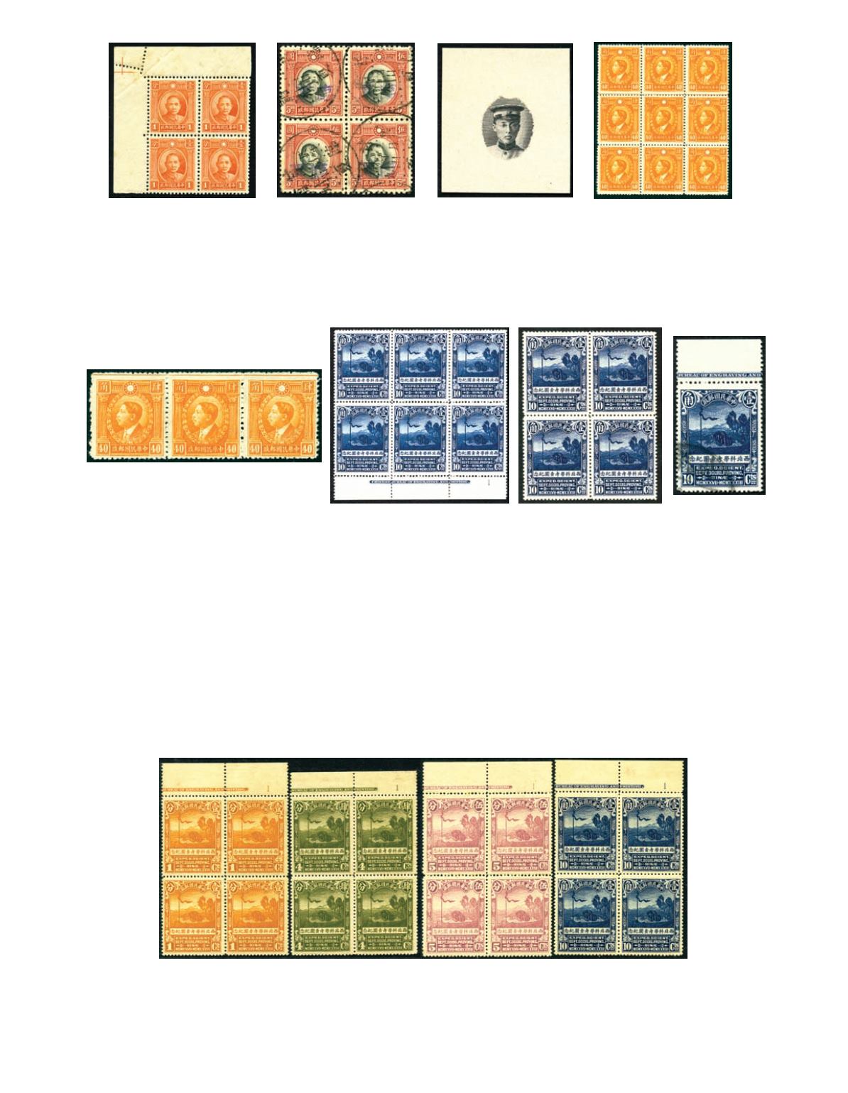 1932 Peking print Martyrs 40c orange block of 9, center stamp with re-entry variety, unmounted and fresh. Chan 343. Photo