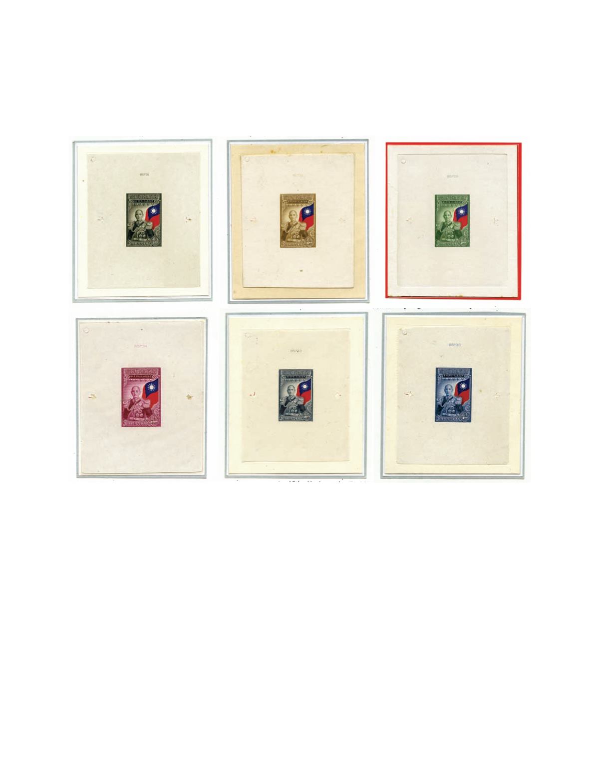 1945 Inauguration of Chairman Chiang Kai Shek complete set of 6, Color trial proof on white card, printed by the American Bank