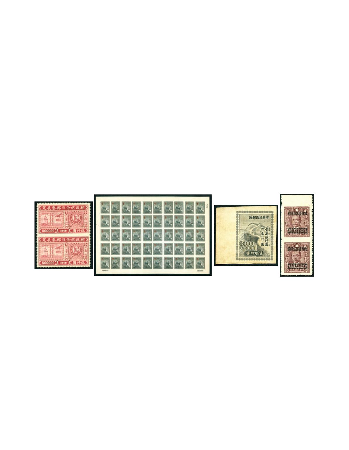 1948 CNC First Union surcharge, $10,000 on $20 carmine SYS Chungking Central Trust print block of 8, horizontal imperf.