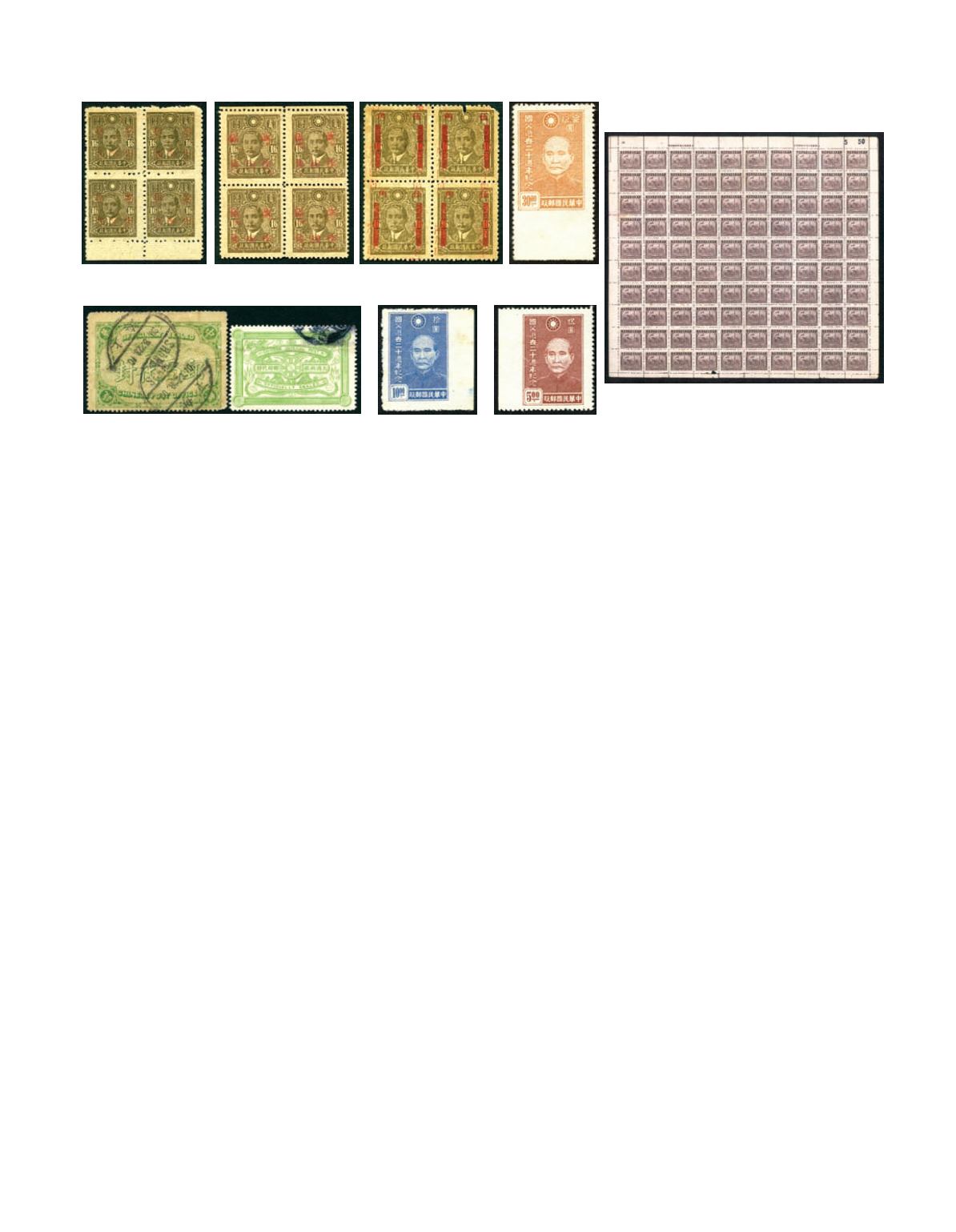 1940’s ROC Revenue stamps Shanghai Dah Tung print, $200 dull purple complete sheet 10 x 10, total 3 sheets with serial