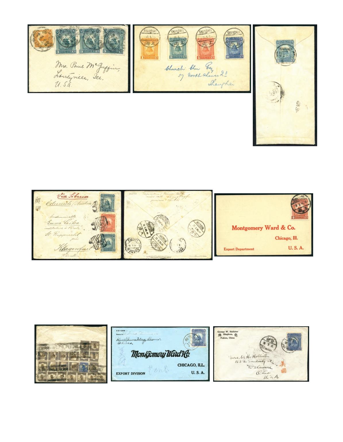black, on reverse with a lot of transit postmarks, including bilingual 'TIENTSIN/19.9.24', 'HARBIN/22.9.24' x 2, 'MOSCOW/4.10.24'