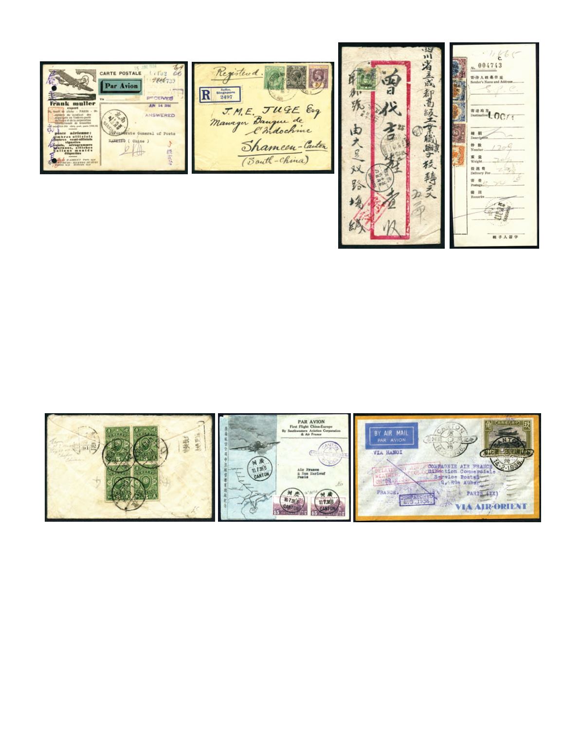 char. ‘CHEKIANG/HUCHOW’ rimmed dot cancellation and bilingual ‘HANGCHOW/HANGHSIEN/10.10.36’ arrival cds. Fine.