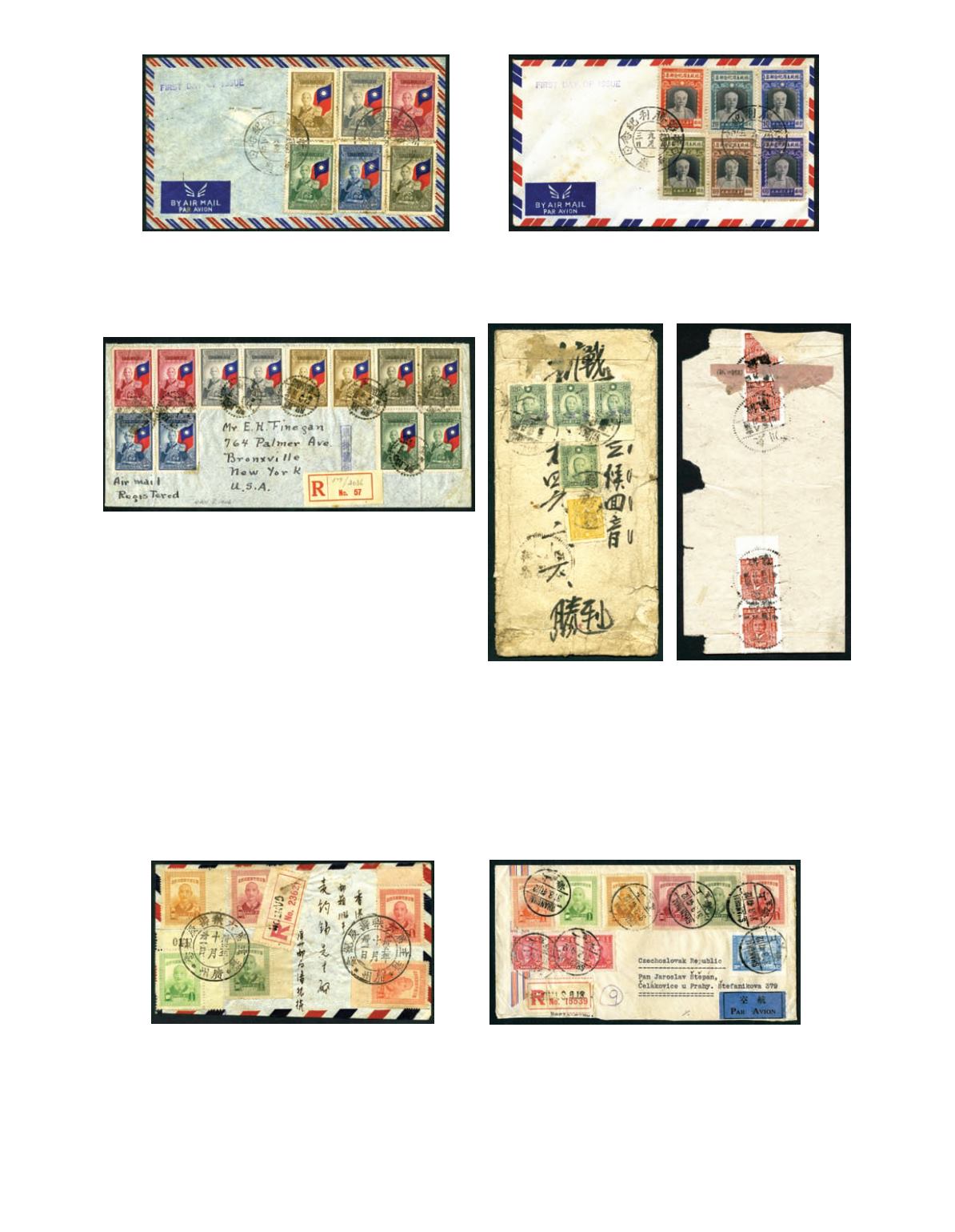 1947 (31 Mar.) A multiple franking cover from Shanghai reg. to Czechoslovakia, including 60th Birthday of Chiang Kai shek