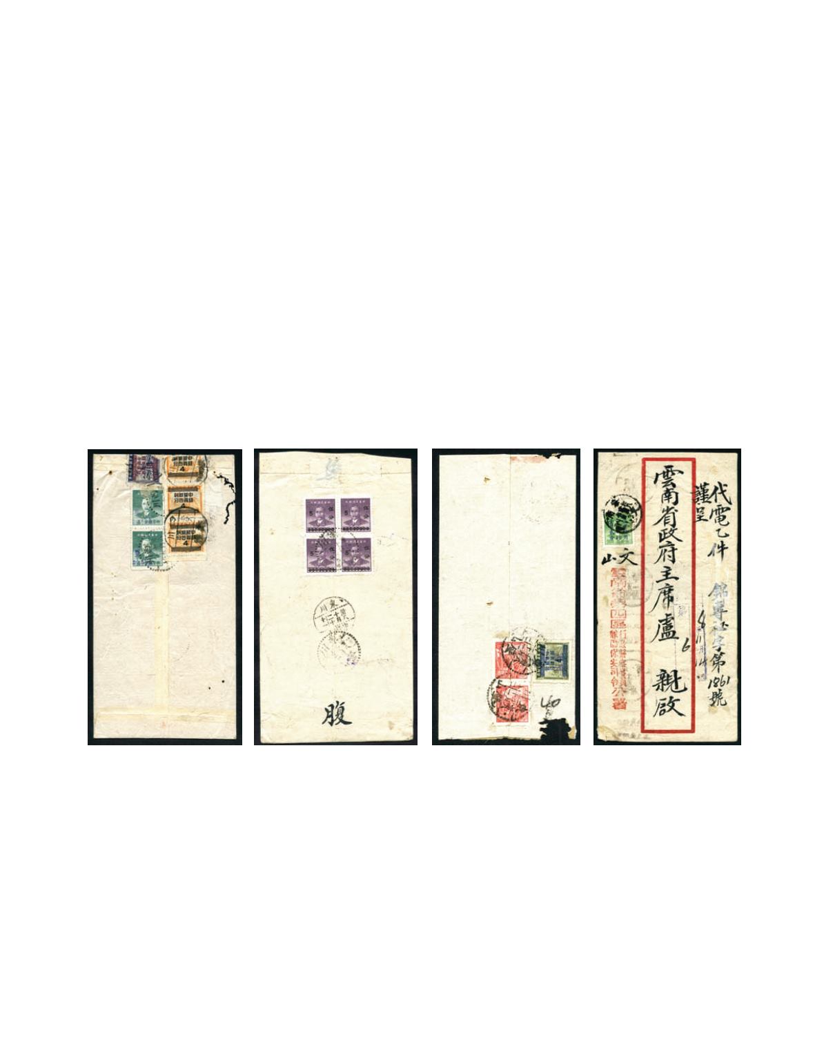 SZECHWAN/JILIUJING/4.9.49' transit and char. 'CHENGTU/5.9.49' arrival cds, a few worn holes.