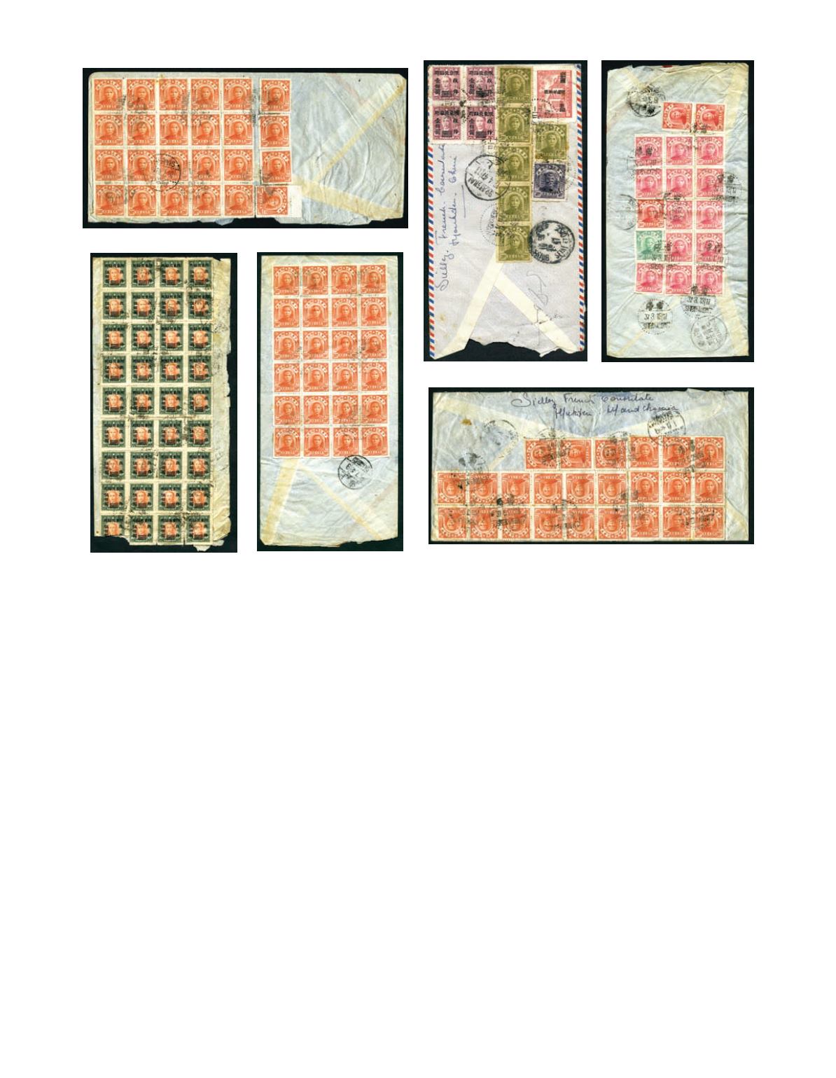 Central print $20 c 6, %40 and surch. on SYS Shanghai Tung print $100 on $1,000 block of 4, National Assembly $10 on $100, tied