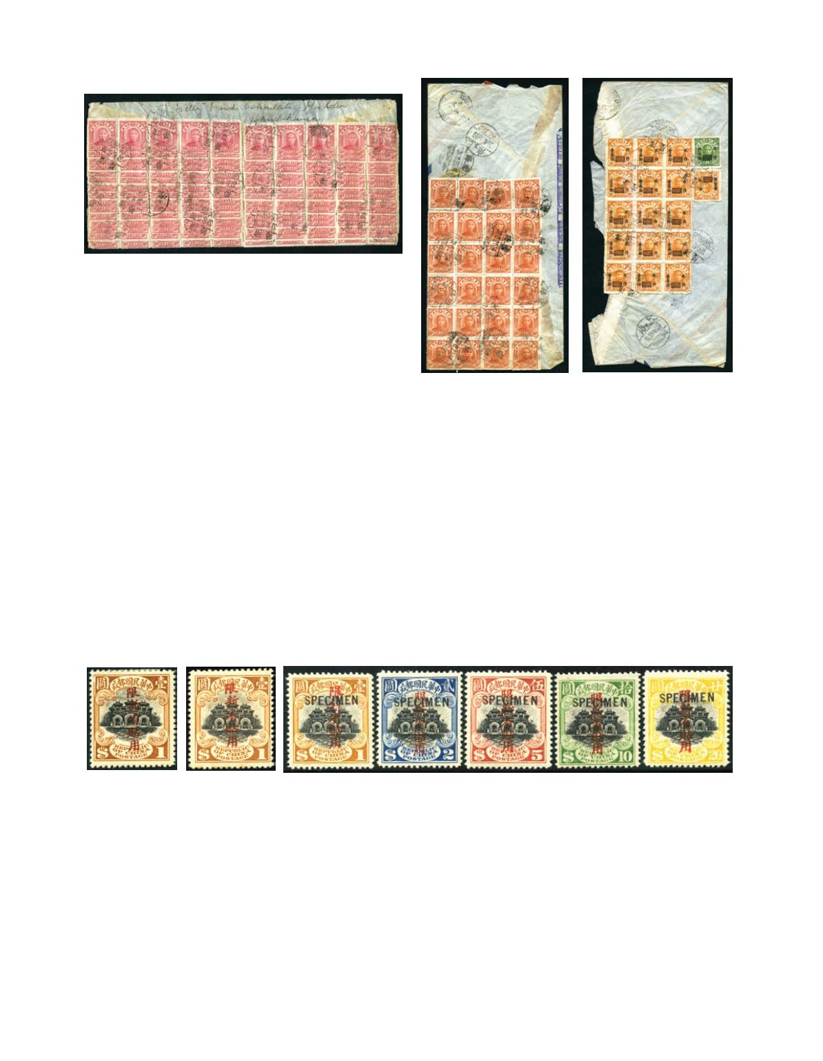 Peiping print $1,000 brown orange strip of 4 and block of 24, tied by bilingual 'SHENYANG' cds, bilingual 'SHANGHAI/23.6.48'