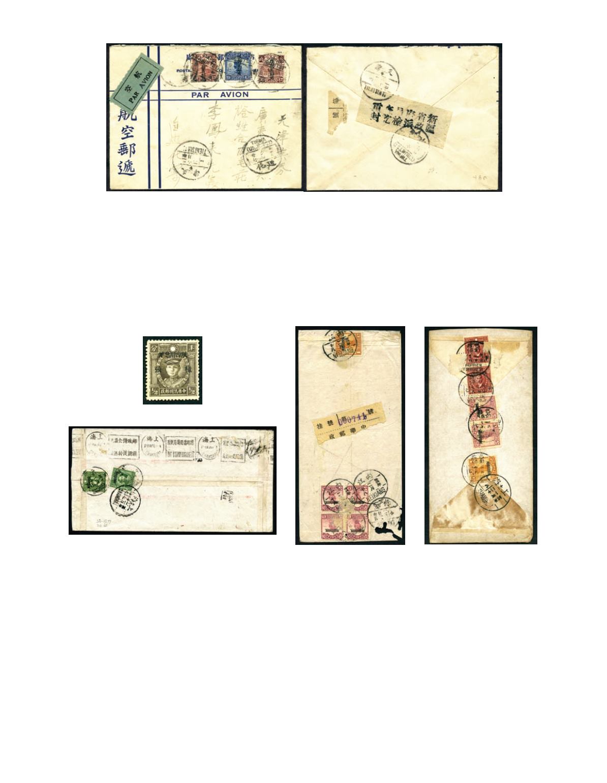 plus a rare handstamped in red char. 'Air Mail' on 30c Reaper (Chan PSA4), tied by bilingual 'TIHWA/URUMTS' cds, and bilingual