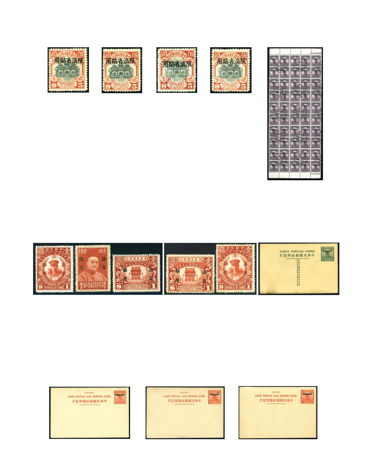 1929 Opt. 'Limited for use in Yunnan' on Unification and State Burial complete sets, plus extra short set of 3 of each set, mint and