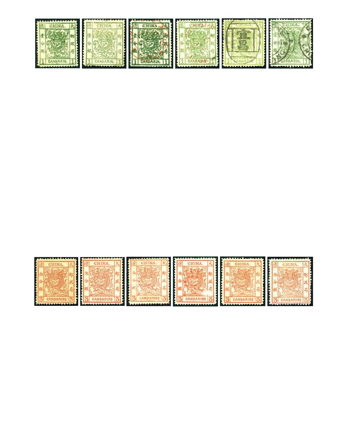1878 Large Dragon thin paper, 1 cand green with ‘CUSTOMS/KIUKIANG/27.11.84’ cds in red. Very fine and rare. Chan 1.