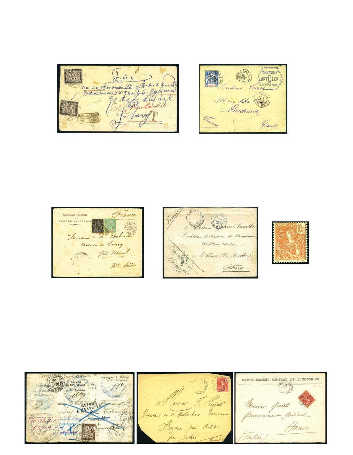 SAIGON' cancellation, on reverse 'COCHINCHINE/FRANCAISE' military chop in black, 'VESOUL/1.8.98' arrival cds. Toned