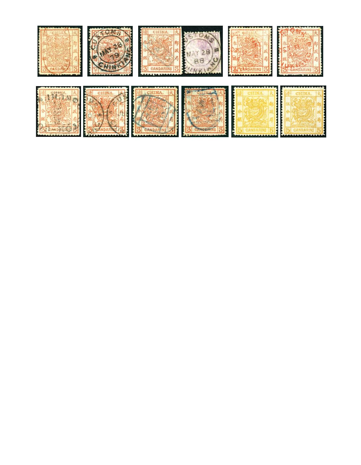 1878 Large Dragon thin paper, 5 cands orange tied by partial ‘CUSTOMS/CHEFOO’ very fine used. Chan 3. Photo