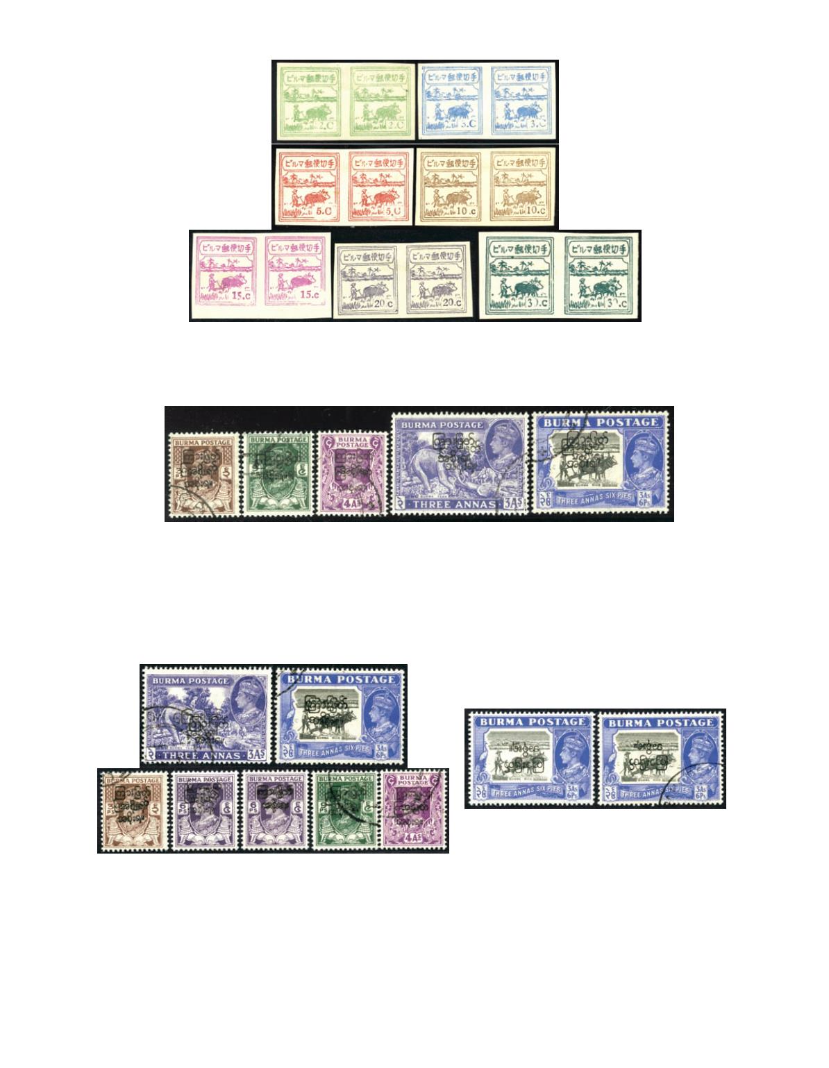 Government' in Burma, both with opt. double variety, not listed in any catalogue. both 6p in mint condition, others fine used. SG
