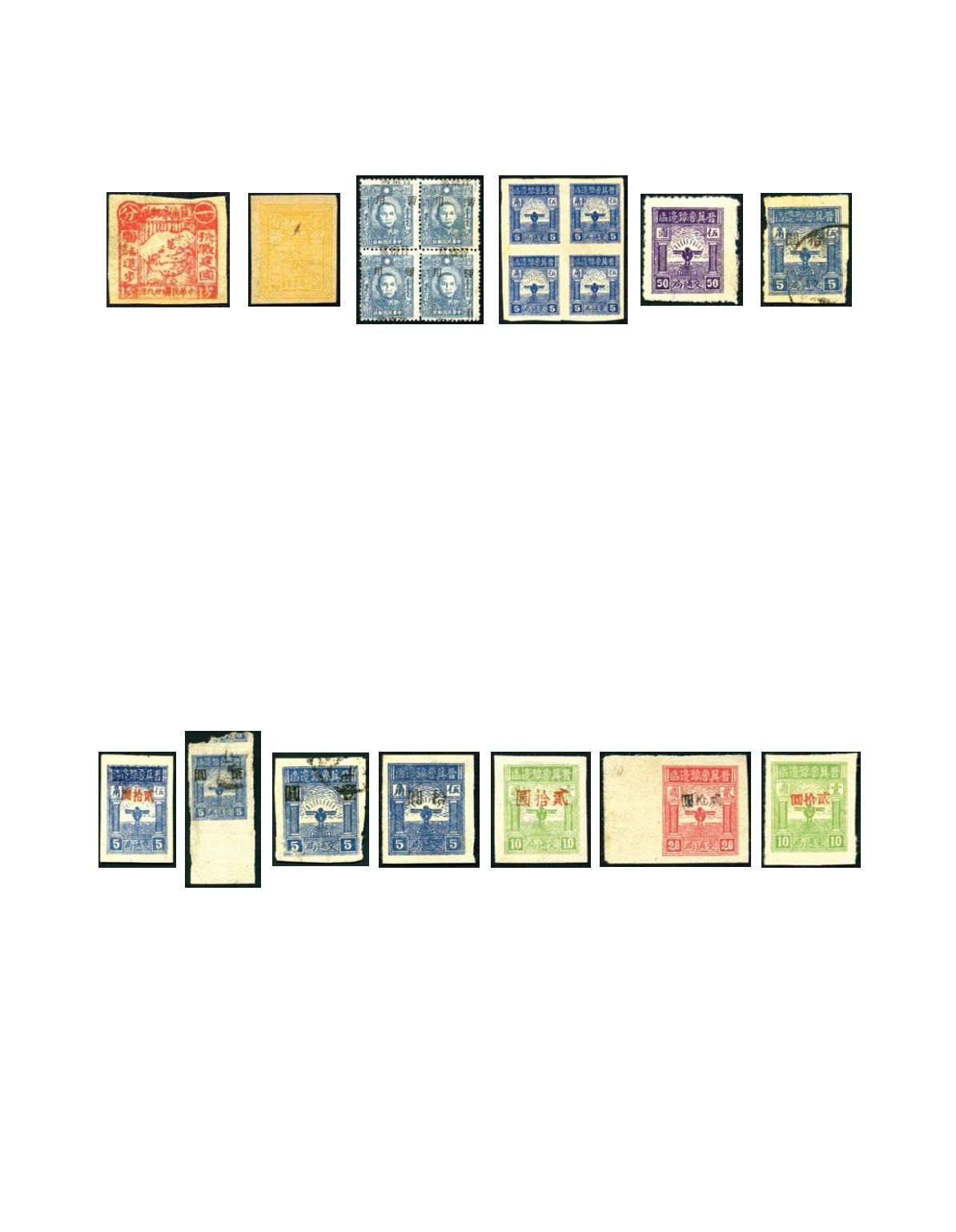 1945 Machine opt. on SYS stamps of the Menkiang government, 50c blue block of 4, mint and $1 brown single stamp, mint and no