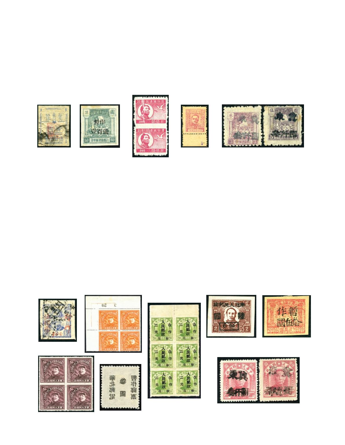 1948 Tangshan 1st surcharged on Small Victory, $3,000 on $3 violet and $3,000 on $5 blue violet, unused and no gum as issued,