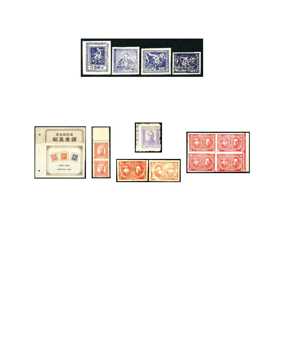 1946 Antung 1st print, Chu Teh and Chairman Mao, $15 vermilion imperf. block of 4, printed on calendar soft paper with colour