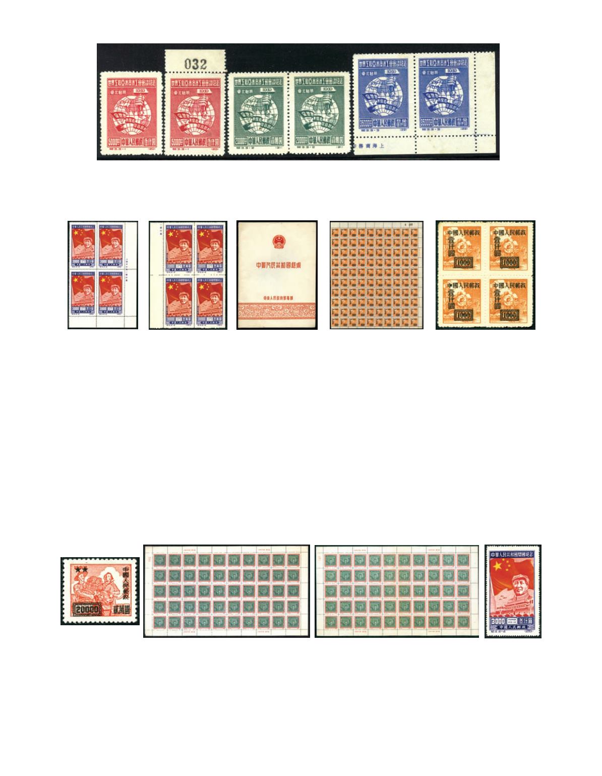 1950 (C4NE) Commemorating Inauguration of PRC $5,000 - $30,000 complete set of 4 in blocks of 4, each block with partial