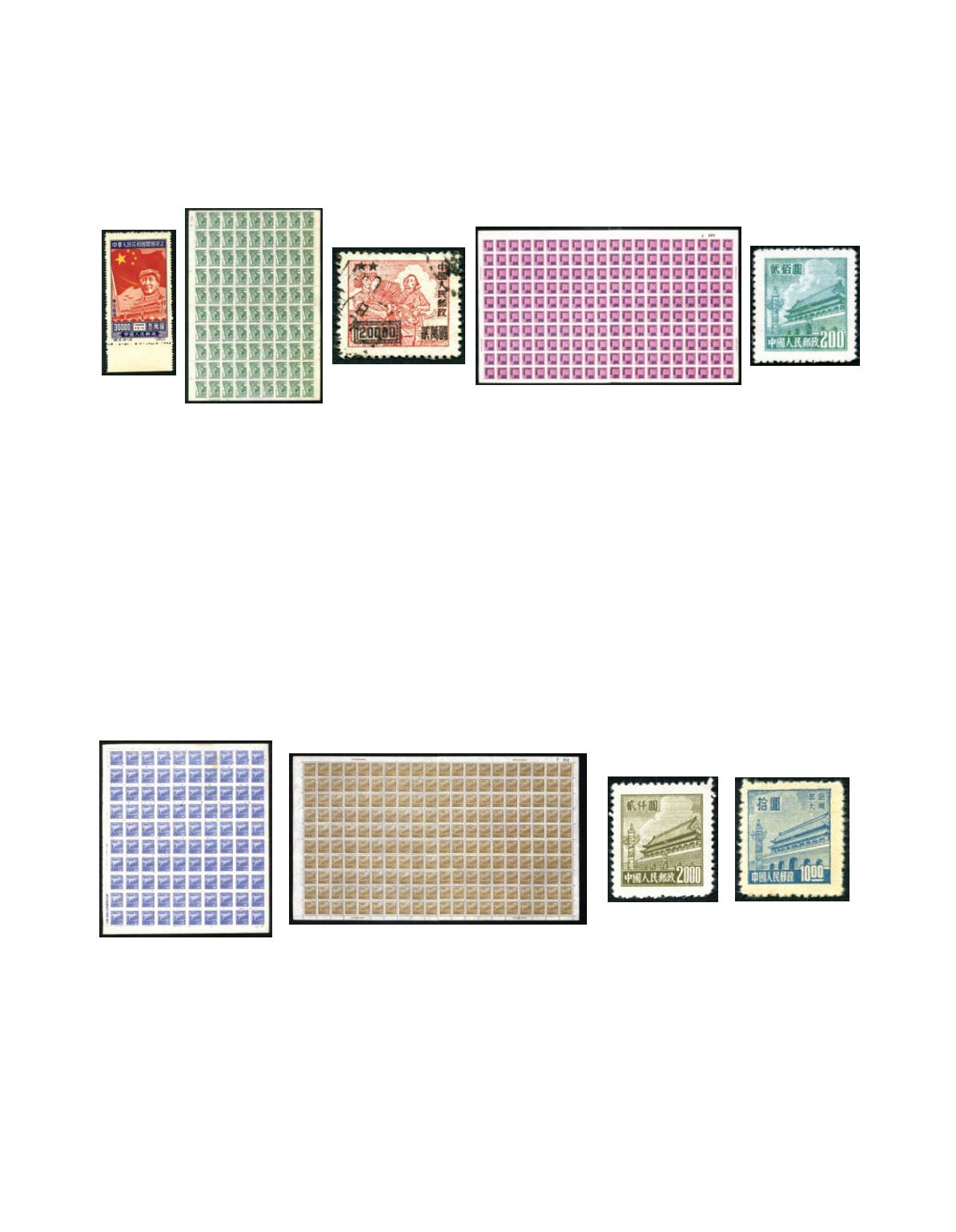 1950 Tien An Men (Used in North-East) (RN1) value 35,000 Yuan, 100 pcs in complete sheet, variety shift perf. to left, unused and