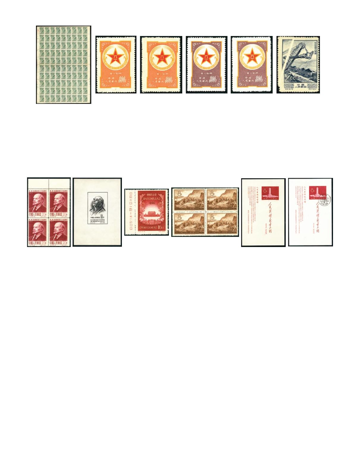 1957 30th Anniv of Founding of People's Liberation Army (C41) complete set in block of 4, unused, no gum as issued, lightly