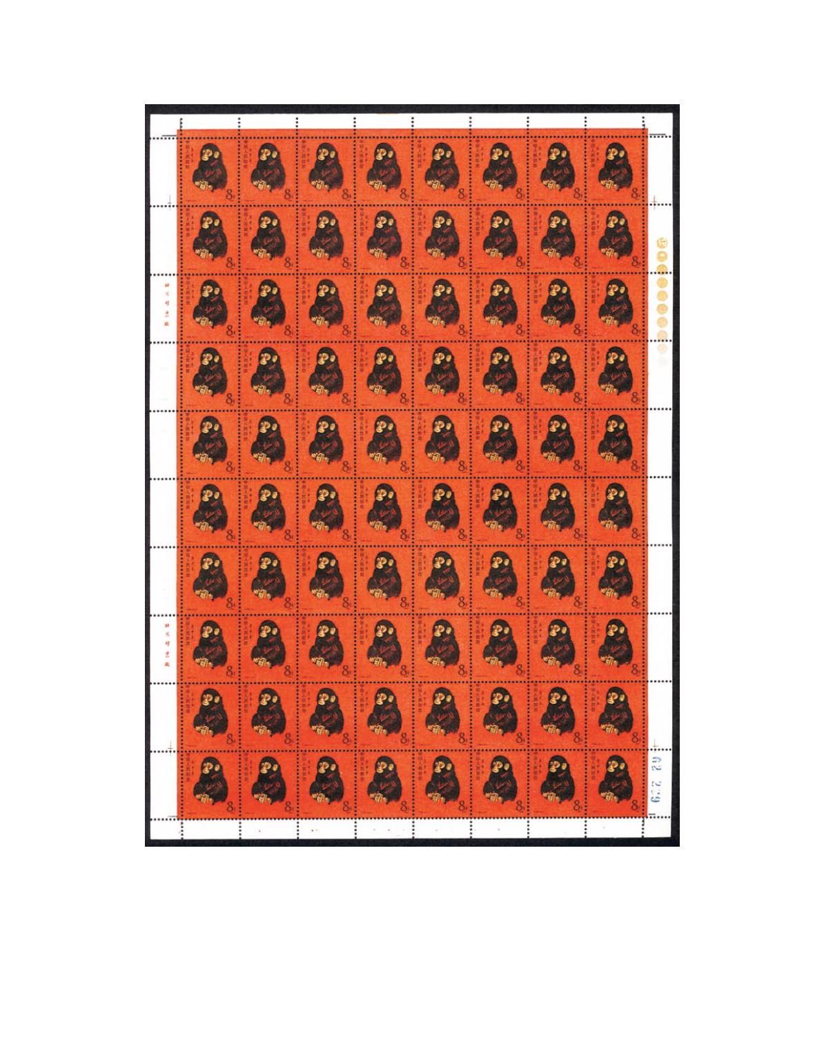 1980 (T46) The Year of Monkey complete sheet of 80, with gold colour in margin, plate no. '62229', rich surface colour, unmounted