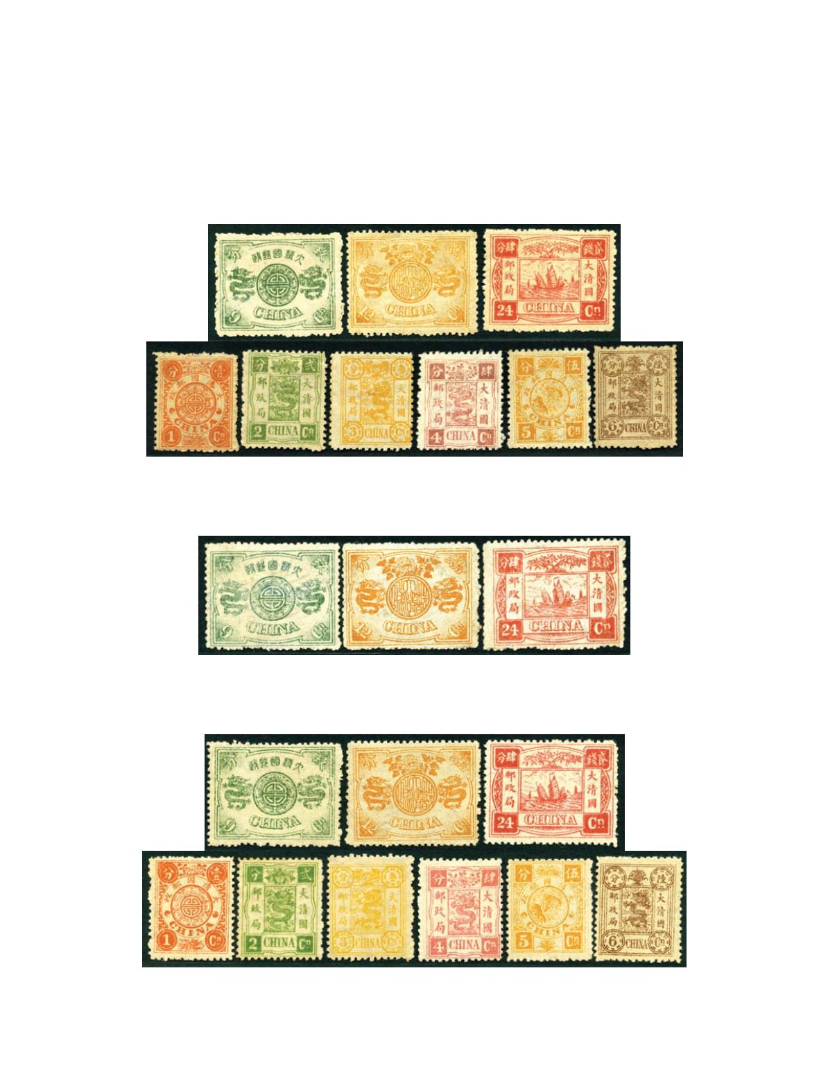 1894 Dowager first printing 1 cand to 24 cands complete set of 9, mint original gum lightly hinged or unmounted, very fine. Chan