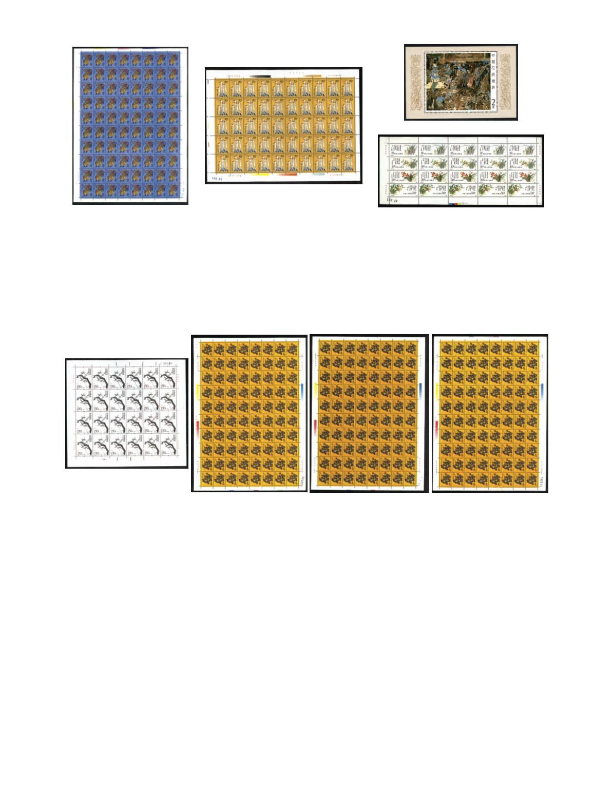 1988 Orchids complete 4 in strip, 5 strips in full sheet x 10. 1998 He Xiangning's Chinese Paintings, complete set of 3, 24 sets in