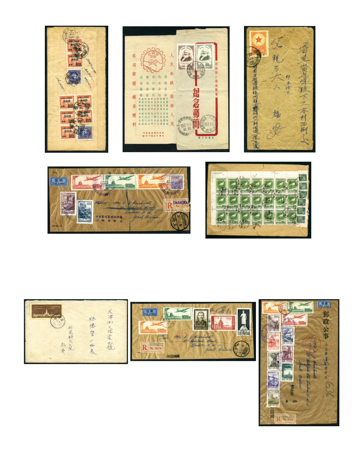 1954 (1 May) A Postal Office large cover from Shanghai reg. to England, via Czech, bearing (S8)