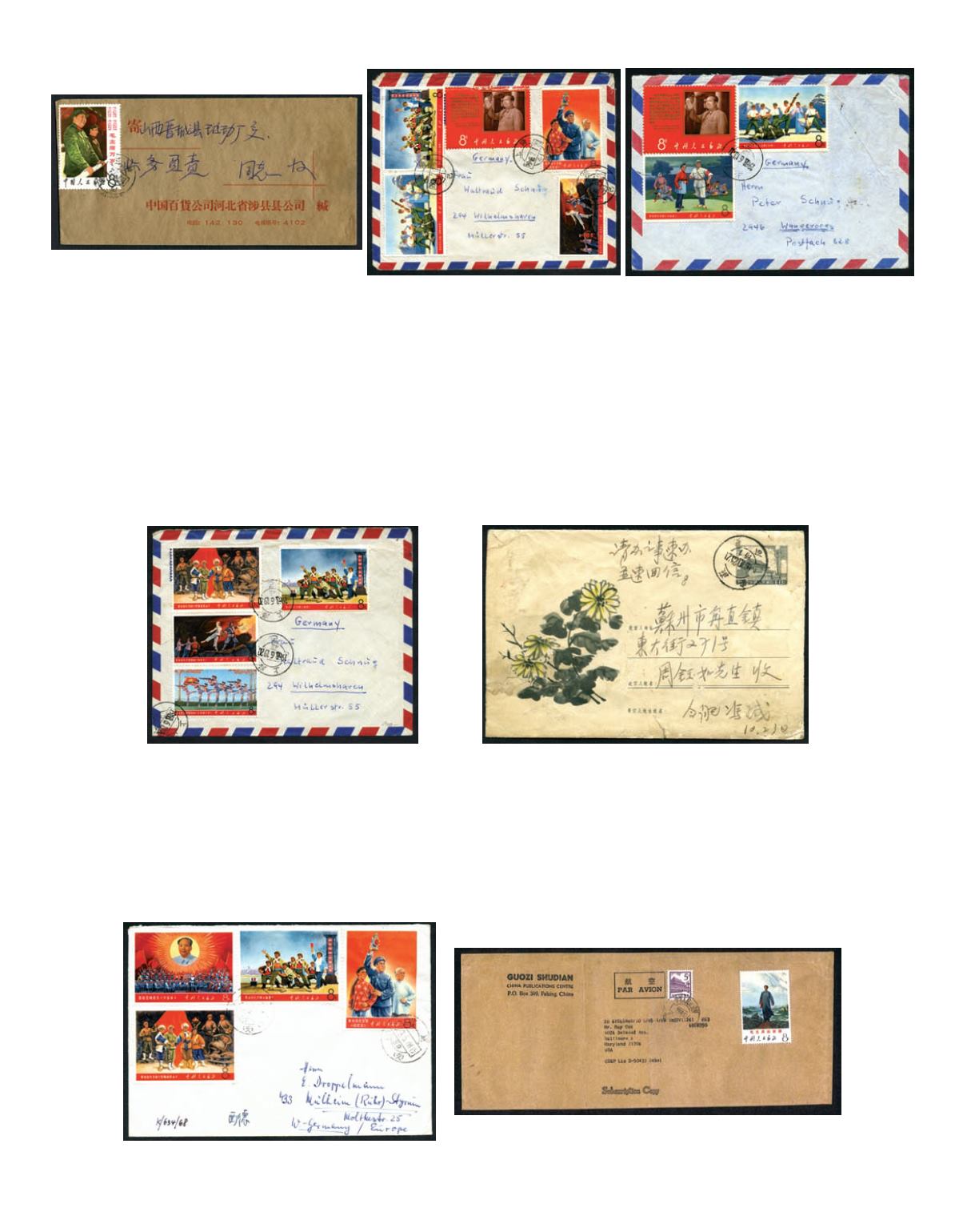 short of 6, less Chairman Mao & Procession, On the Docks and Shajiabang, and (W7) 8f one single stamp, Changsha, tied by