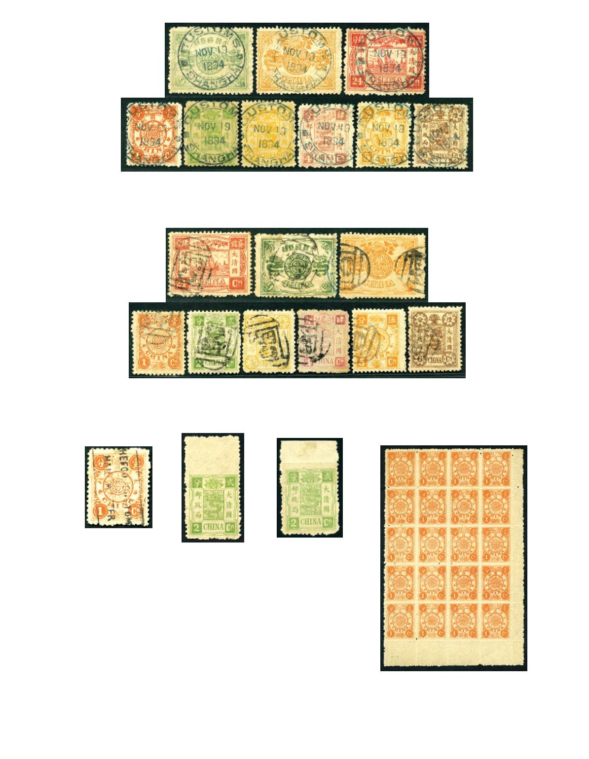 1894 Dowager first printing, 1 cand to 24 cands complete set of 9, all tied by full strike of ‘CUSTOMS/SHANGHAI/19.10.94’