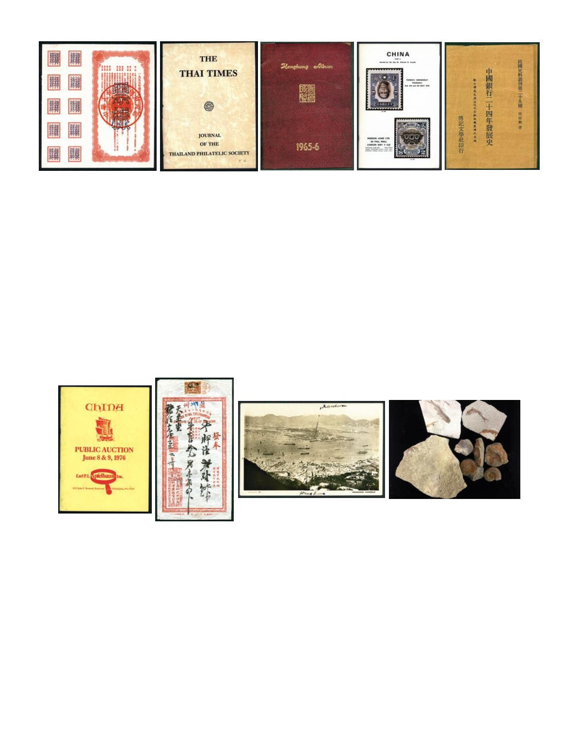 5 copies of stamps auction catalogues, including Robson Lowe 1955 HK and Treaty Ports, Apfelbaum China 1976 June and Nov.