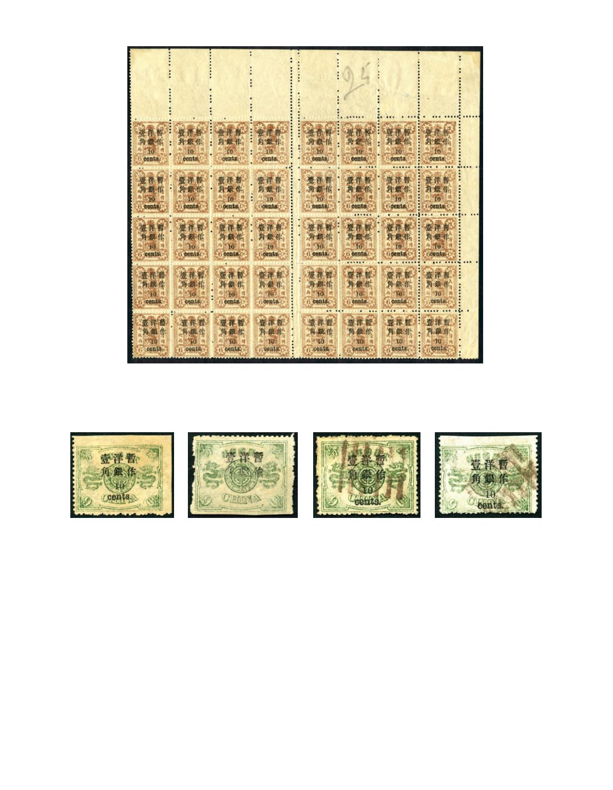 omitted and surcharged figures '10' & 'cents' omitted varieties, not listed in any catalogue, mint and no gum, trimmed bottom perf.